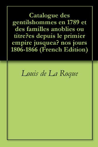Book, so you can download it by purchasing to get the soft file. ... PDF File Surprise Doc ePub Catalogue des gentilshommes en 1789 et des familles anoblies ou titrées depuis le primier empire jusqueà nos jours 1806-1866 PDF Page : 1. Title Catalogue des gentilshommes en 1789 et des familles anoblies ou titrées depuis le primier empire jusqueà nos jours 1806-1866 Subject